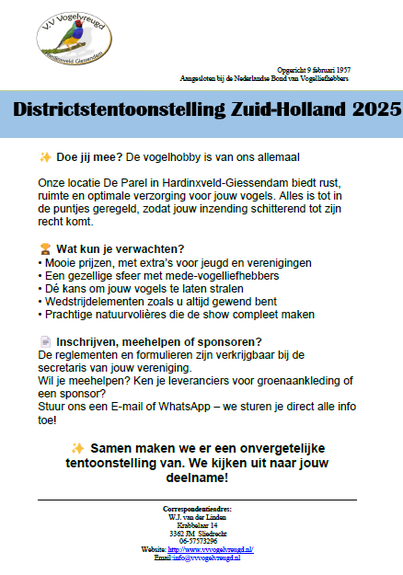 DTT 2025 Hardinxveld-Giessendam - Vogelverenigingen District Zuid-Holland NBvV
