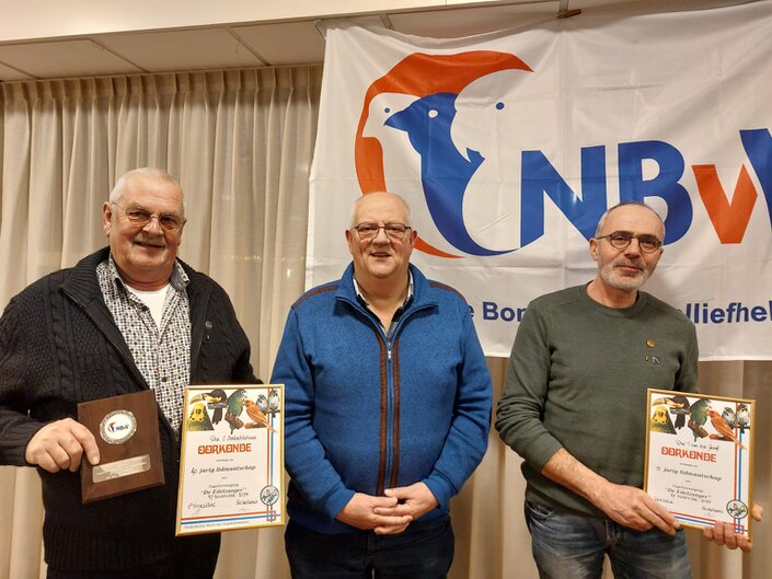 op 5 februari 2026, tijdens een gezellig samenzijn heeft v.v. De Edelzanger Groot-Ammers haar jubilarissen gehuldigd. Ook werd deze avond het 70-jarig bestaan van de vereniging gevierd. ![]() van links naar rechts Cees Ambachtsheer (40-jarig jubileum), Districtsvoorzitter Lex Kaptein en Tom van der Graag (25-jarig jubileum) Ook heeft voorzitter Cees Ambachtsheer een plaquette voor het 70-jarig jubileum van de N.B.v.V. en een enveloppe met inhoud van het Districtsbestuur Zuid-Holland ontvangen. |